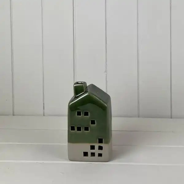 Green Ceramic House Decoration with LED (15.5cm)