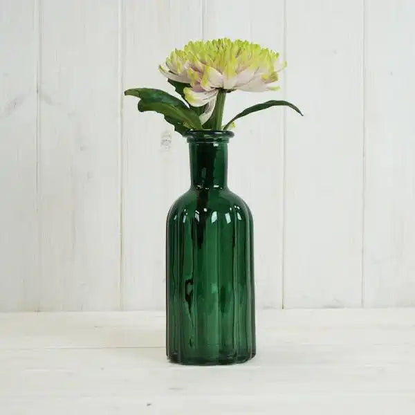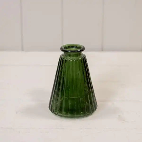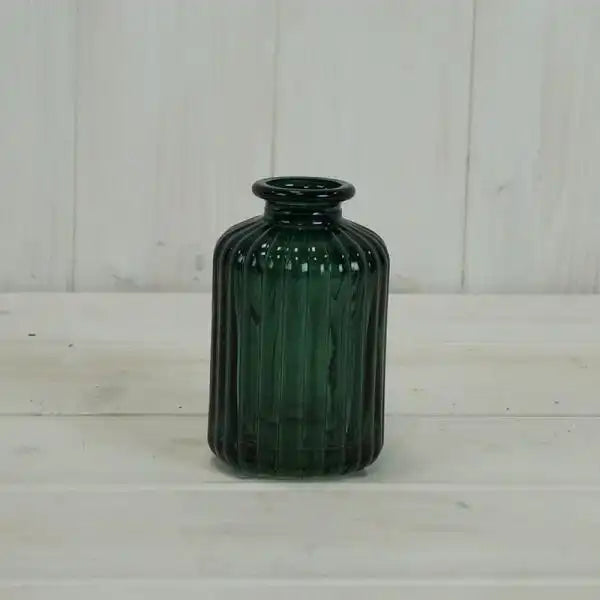 Green Ribbed Glass Bottle H10cm x TD3.7cm B5cm W 0.2Kg