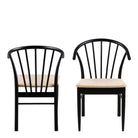 • The Cassandra chairs are the stylish sidekicks to this showstopper table. With their black lacquered oak frames, spoked backrests, and comfy armrests, they're here to support you. The off-white paper-plaited seats with a woven pattern? A hint of Scandinavian design that balances sophistication with a relaxed, modern style.