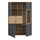 Klara Display Cabinet with 2 Door 2 Drawers and 1 Glass Door in Grey and Oak