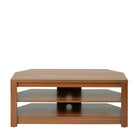 There is plenty of space to store your electronic accessories, such as a DVD player, satellite box or soundbar. The cable management leg on the rear hides unsightly wires. The middle shelf is height adjustable, providing more flexibility for additional storage.