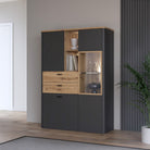 Klara Display Cabinet with 2 Door 2 Drawers and 1 Glass Door in Grey and Oak inc LED Lighting
