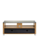 Simple and contemporary, the Elegance Cabinet TV stand will create an eye-catching focal point in your living room. It is finished with a wood effect grain finish contrasted with a tinted glass 8mm top panel. The front door opens to reveal two spacious storage compartments. These compartments include cable management holes in the back panel to keep everything neat. There is a handy shelf which is perfect for locating a soundbar.