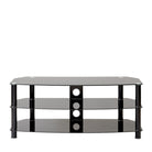 Simple and minimalist, the Vantage TV stand will create an eye-catching focal point in your living room. It is finished with tubular aluminium legs either in chrome and clear glass or matt black with black glass. The chamfered corners mean the stand is ideal for positioning in the corner of the room but also looks good against a living room wall. The three curved glass shelves give plenty of storage space for your electronic accessories, such as a DVD player, satellite box, game console and soundbar.