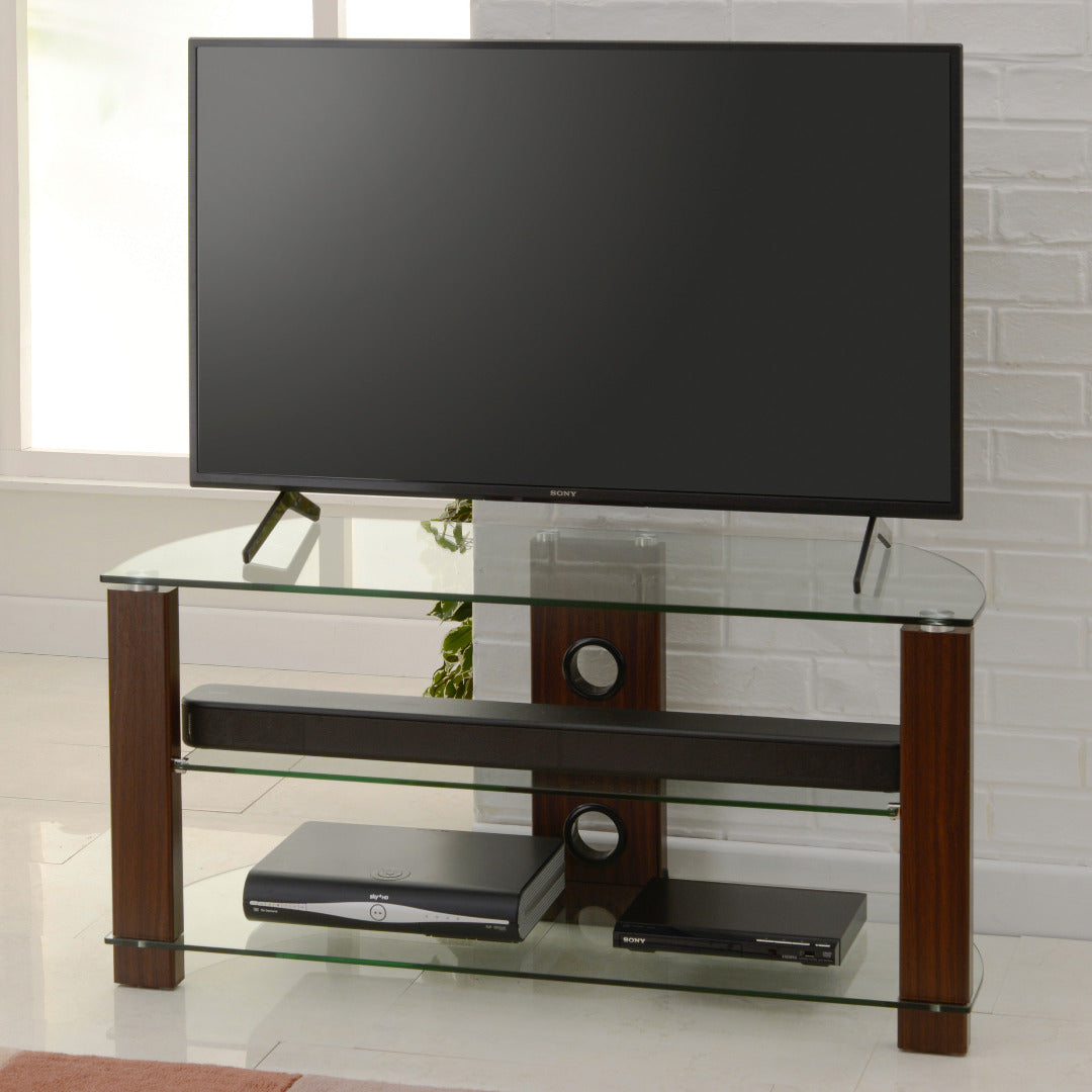 If the design wasn’t enough then you will be pleased to learn that the TV stands and media units in the range come in an assortment of materials, meaning that they will fit in with your home, no matter the décor. Walnut, Oak, chromium and glass; perfect for modern and traditional homes alike.
