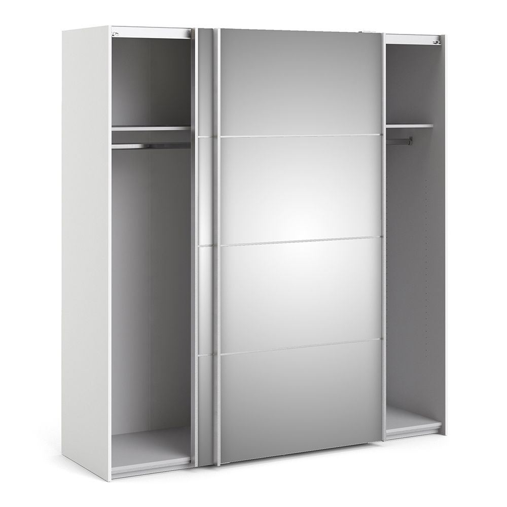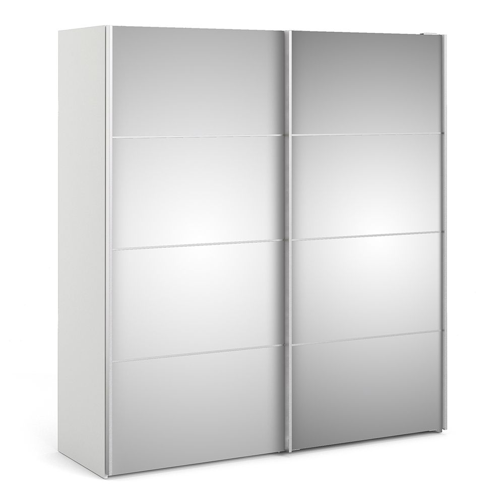Verona Sliding Wardrobe 180cm in White with Mirror Doors with 2 Shelves