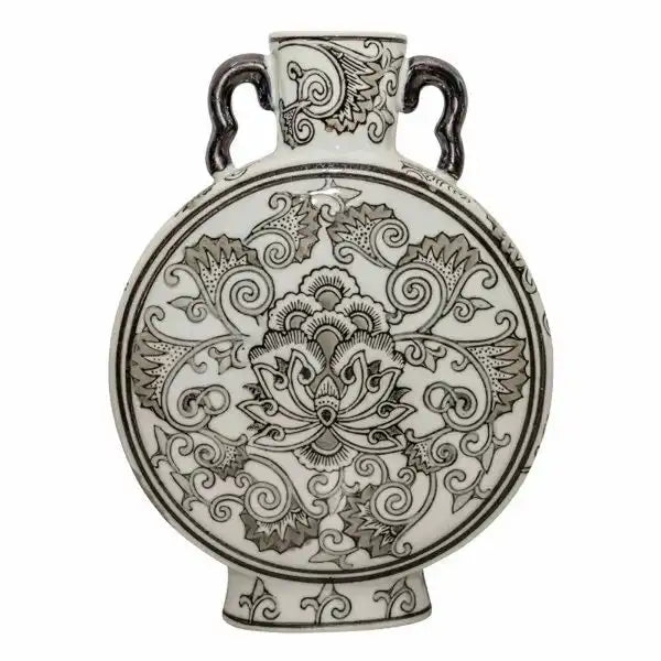 Angel Trumpet Inspired Hand Painted Black & White Vase