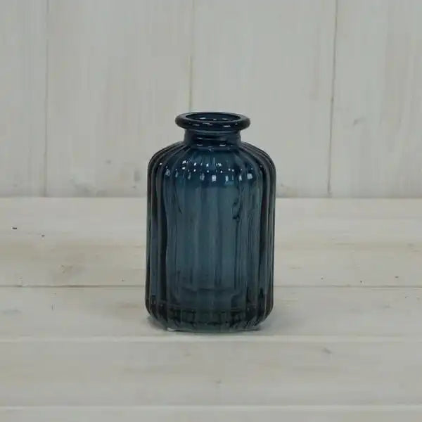 Blue Ribbed Glass Bottle H10cm TD3.7cm B5cm W 0.2Kg