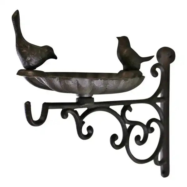 Cast Iron Hanging Basket Wall Bracket With Bird Feeder