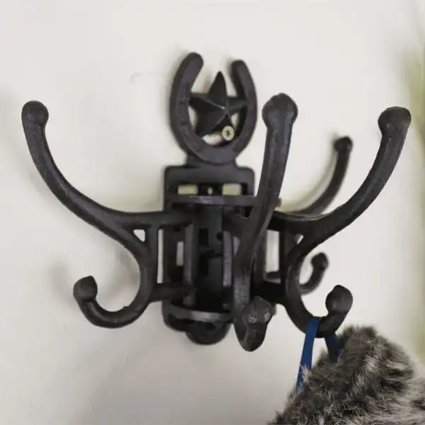 Cast Iron Wall Mounted Rotating Coat Hooks, Horseshoe, 8 Hooks