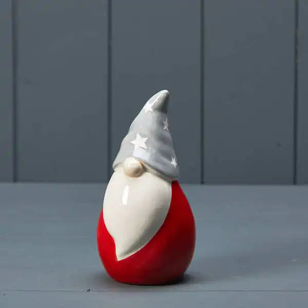A tall ceramic gonk with a star-patterned hat—full of Nordic charm and perfect for festive or winter-long displays.