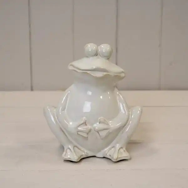 Cream Ceramic Smiling Frog.Outer Qty: 12 Inner Qty: 1
