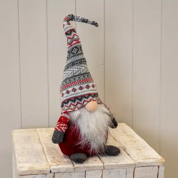 A large, plush fabric gonk with warm textures and a long pointed hat—ideal for creating a Nordic festive feel.