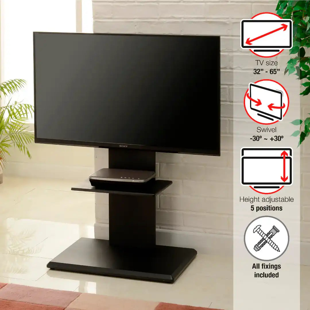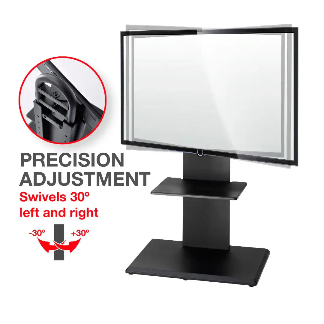 Floor standing TV stand for 32-65 Inch TVs with optional shelf. Swivel and height adjustable bracket mount.