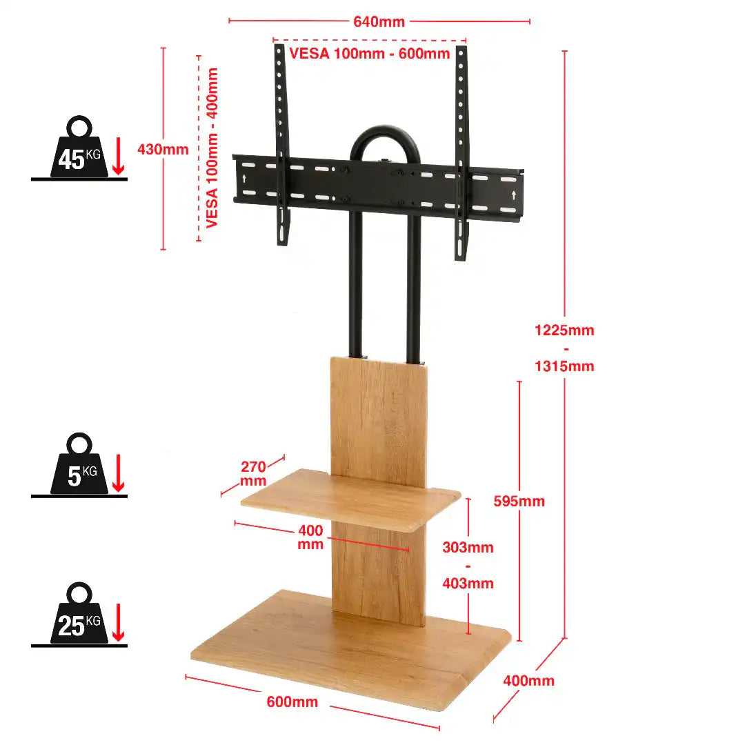 - Compatibility – Suitable for TVs ranging in size from 32 inches to 65 inches. The bracket has a maximum load capacity of 45 Kg, the bottom plinth 35 Kg, and the optional shelf has a 5 Kg capacity.