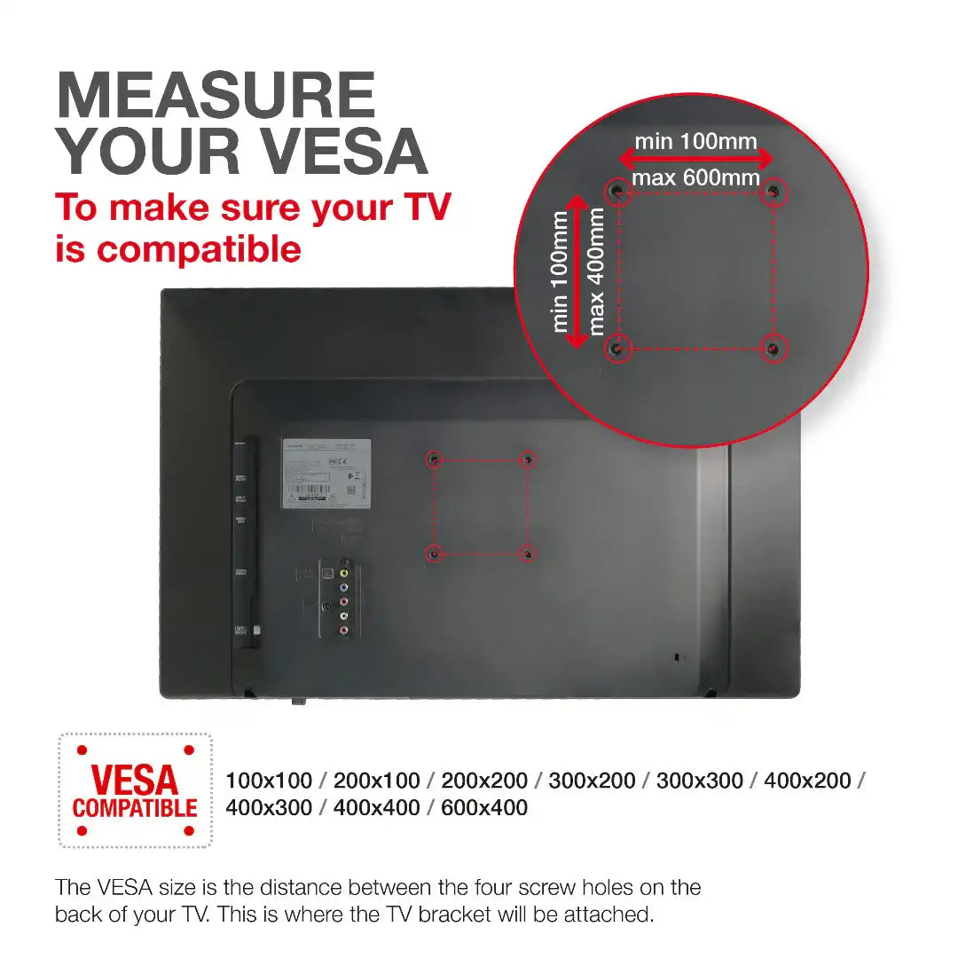 Please always measure the VESA sizes on the rear of your TV before purchasing.