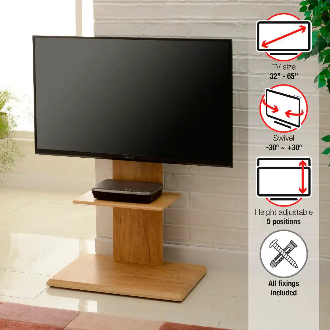 Floor standing TV stand for 32-65 Inch TVs with optional shelf. Swivel and height adjustable bracket mount.