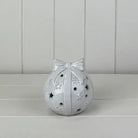 Glazed Ceramic Baulbe with Bow Ornament with Textured Detail and LED (10.6cm)