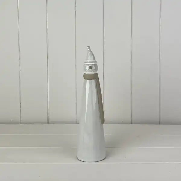 Glazed Ceramic Tall Snowman Ornament with Textured Detail L6.6xD6.6xH26.2cm Weight-404g