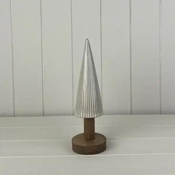 A tall glazed ceramic tree with textured detailing, perfect for adding elegant winter character to mantels or festive tables.