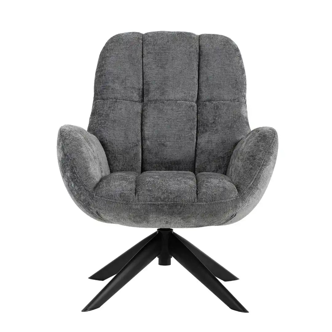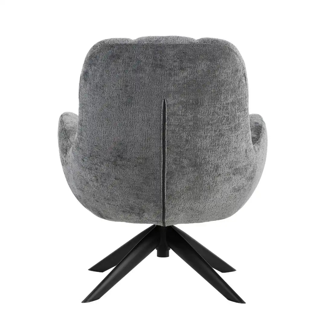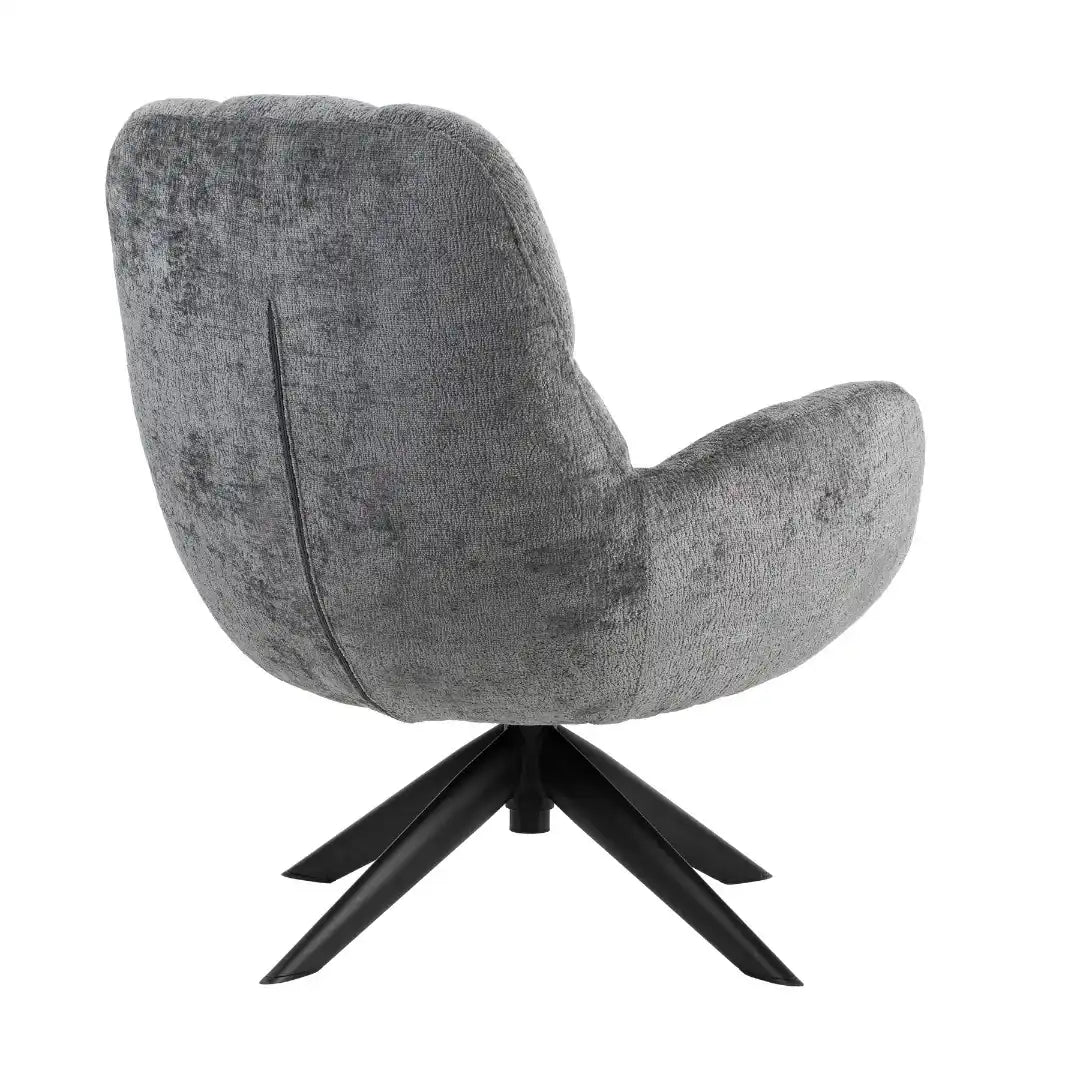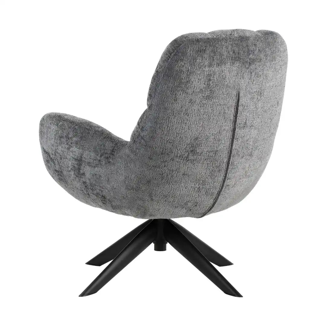 This grey chenille armchair combines comfort with a modern twist. Featuring a swivel base in black powder-coated iron, it allows smooth rotation while maintaining stability. The seat height of 45 cm ensures a relaxed sitting position, and the soft chenille fabric adds a cosy feel to any room.