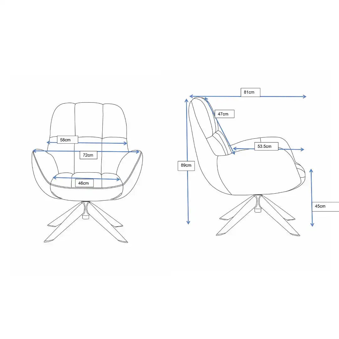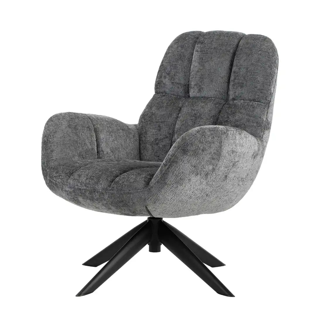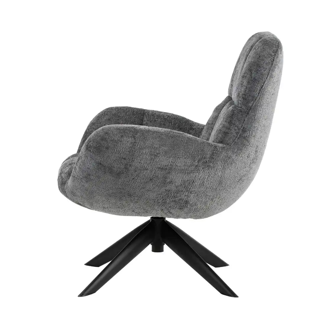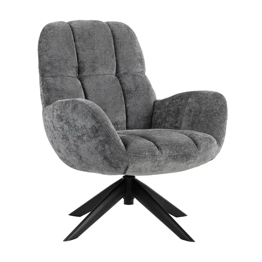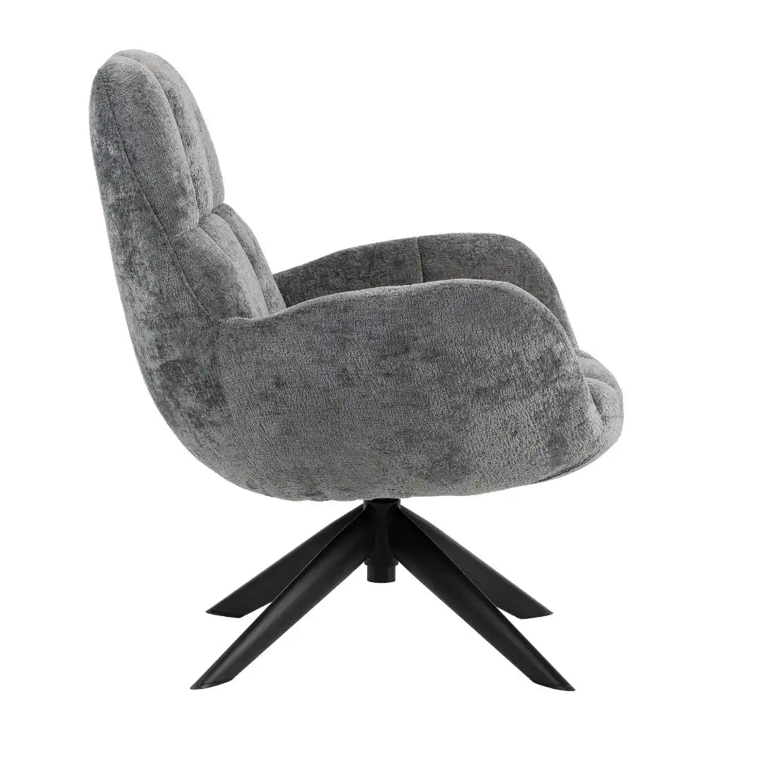 This grey chenille armchair combines comfort with a modern twist. Featuring a swivel base in black powder-coated iron, it allows smooth rotation while maintaining stability. The seat height of 45 cm ensures a relaxed sitting position, and the soft chenille fabric adds a cosy feel to any room.