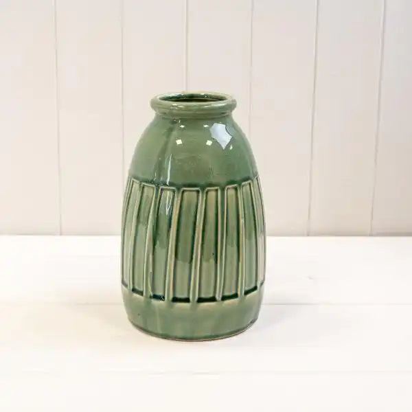 Green Ceramic Vase (24.5cm) TD(ext)9 / (int)7 x BD14 x H24.5cm.Outer Qty: 6 Inner Qty: 2