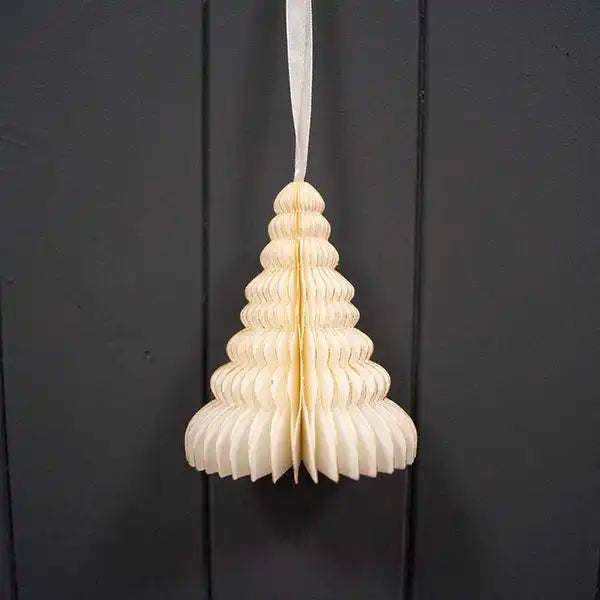 A handcrafted paper tree in soft antique white—perfect for minimal festive styling, table settings, or winter window displays.