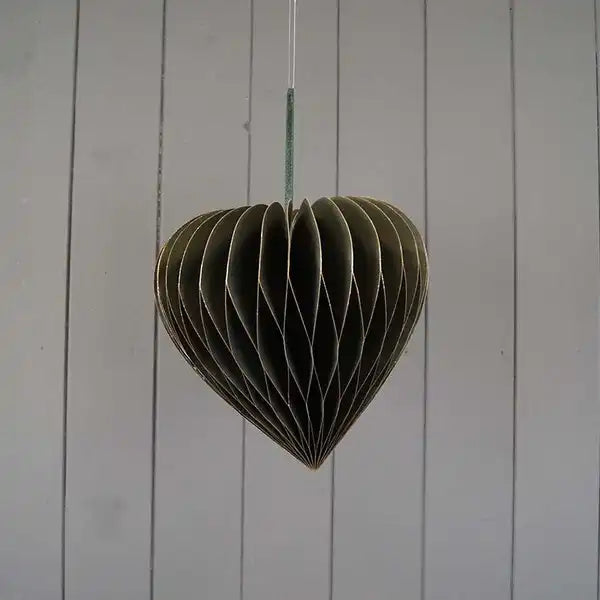 A generous green paper heart with hand-crafted folds—ideal for rustic winter weddings, cosy décor or natural Scandinavian styling.