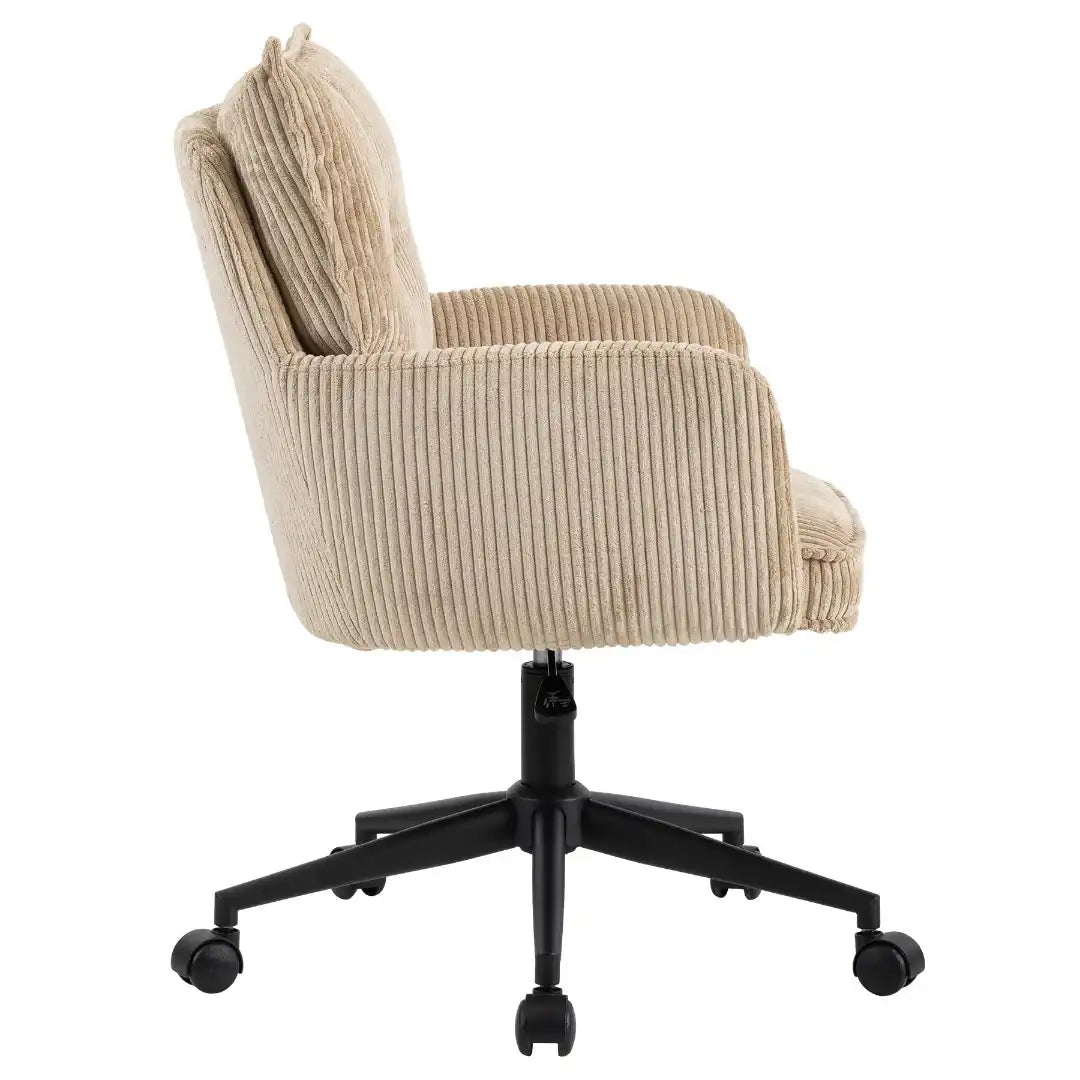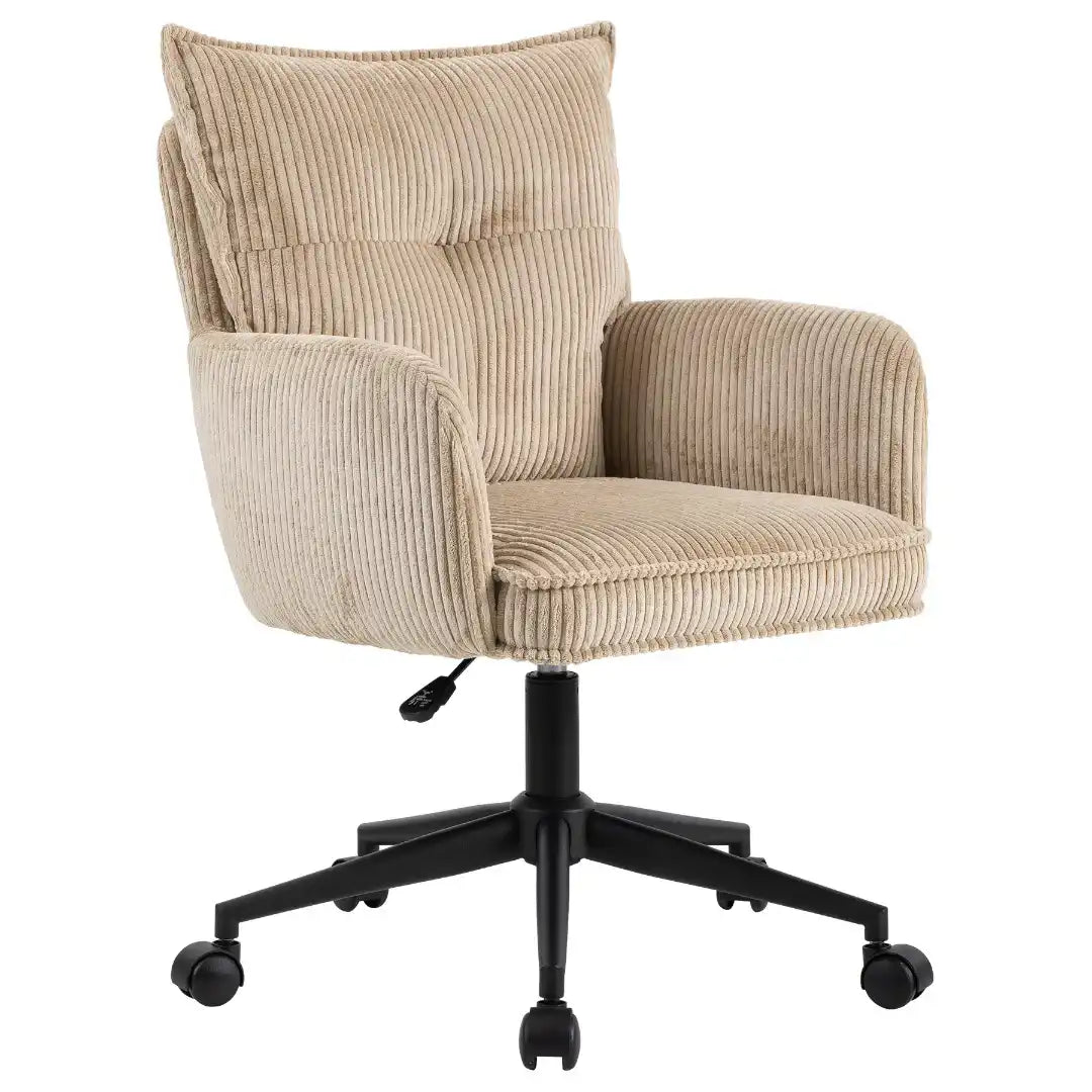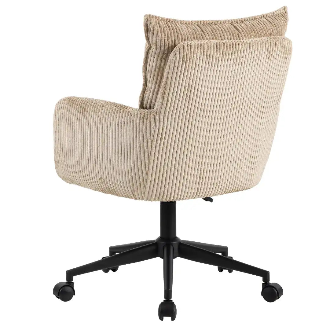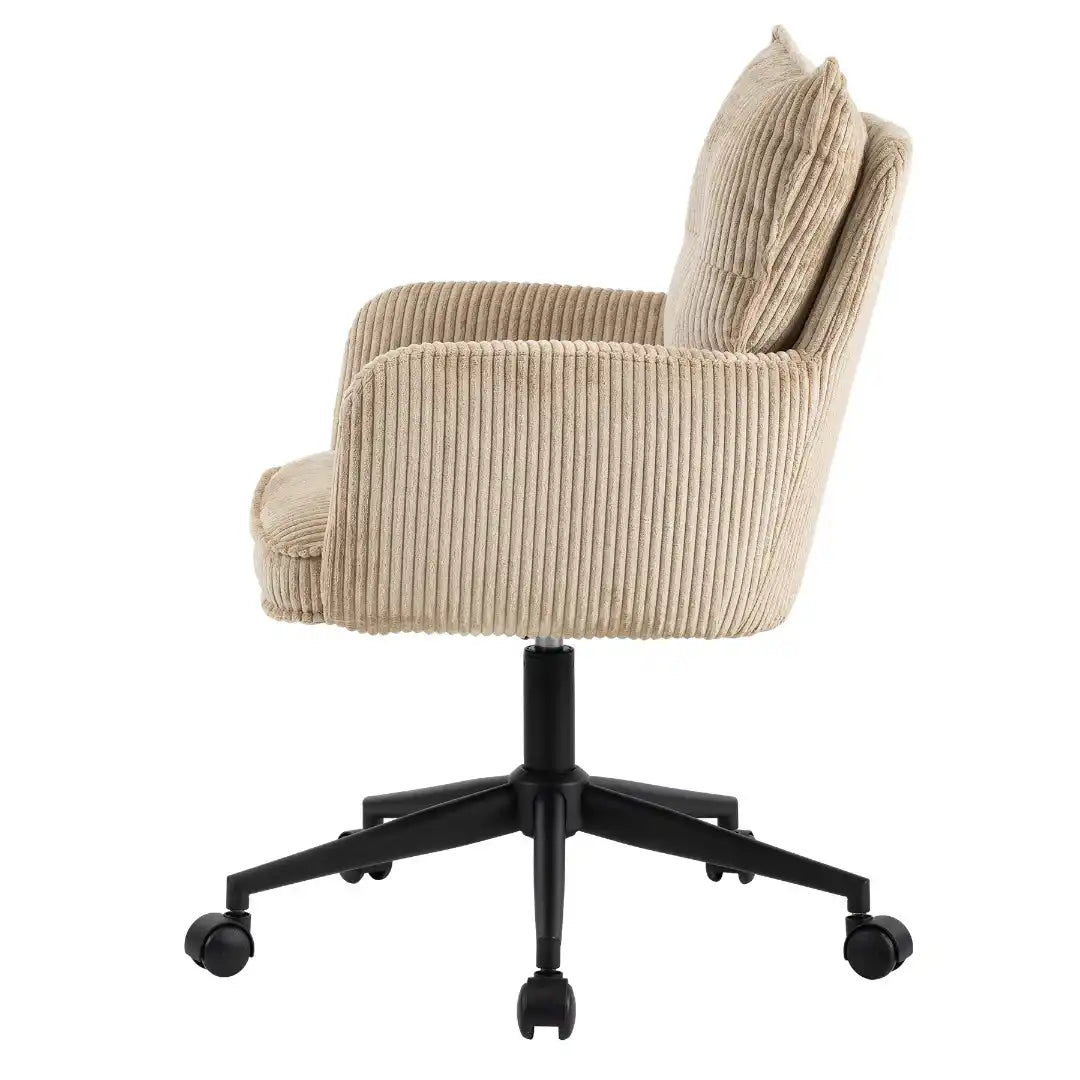 This cream corduroy office chair combines elegant design with everyday practicality. It includes two armrests for added comfort, a gaslift for adjusting the seat height between 47 and 55 cm, and a durable 5-star base in black powder-coated metal. The soft corduroy fabric in a neutral tone makes it a stylish addition to any workspace.