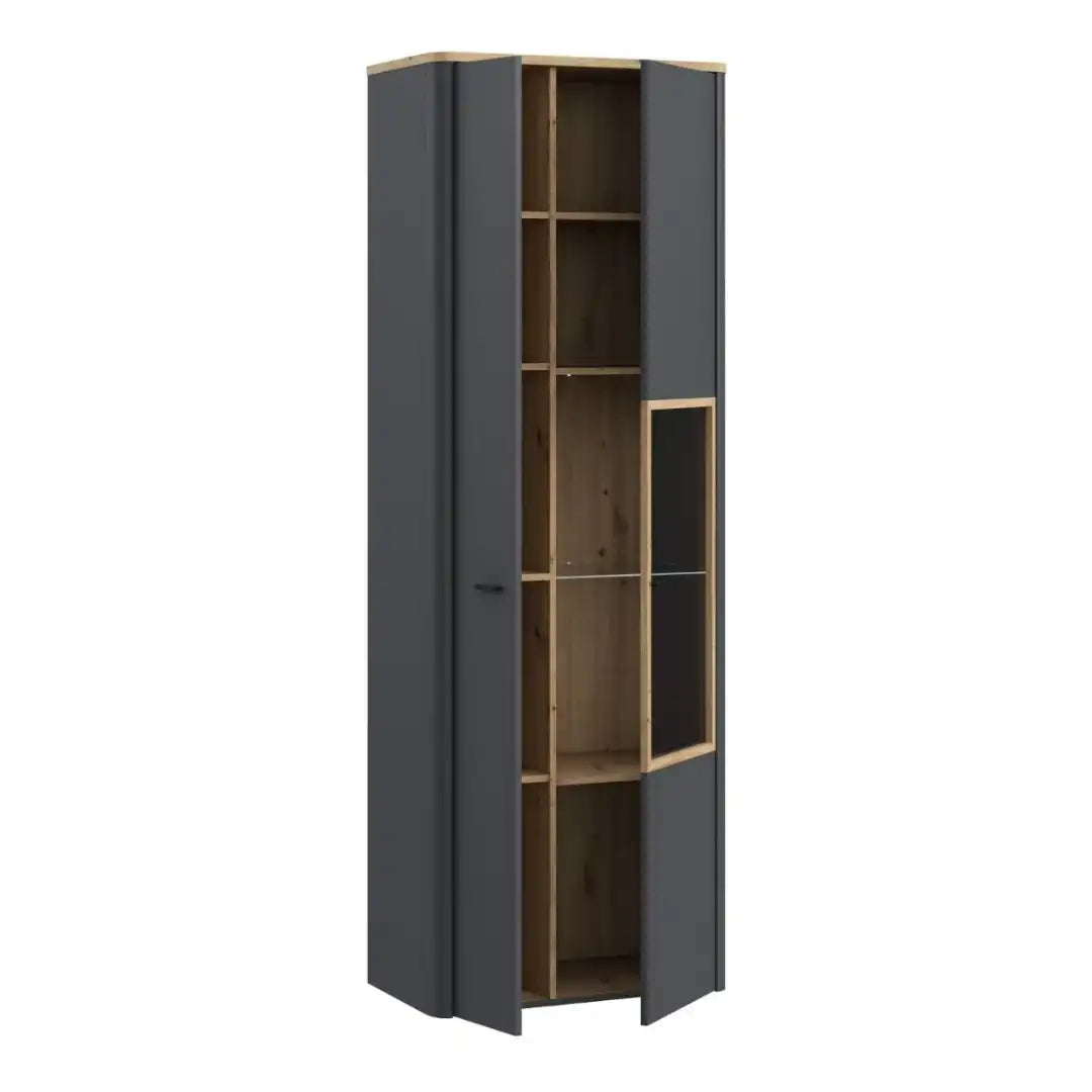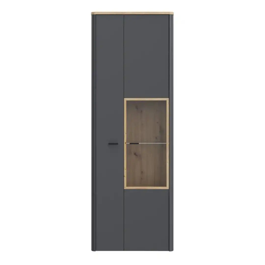 Klara Display Cabinet with 1 Door and 1 Glass Door in Grey and Oak