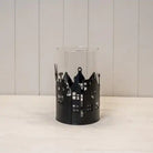 Large Black Metal House Scene Candle Holder with Glass Insert