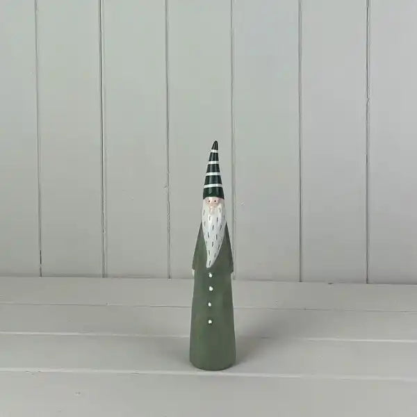 A tall ceramic gonk in soft green and white—adds a gentle whimsical touch to seasonal or everyday décor.
