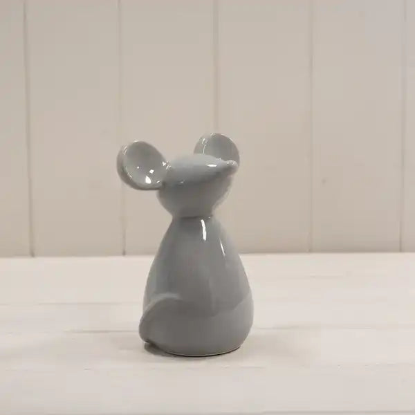 A medium grey ceramic mouse—rustic and charming, perfect for festive displays or woodland-inspired décor.