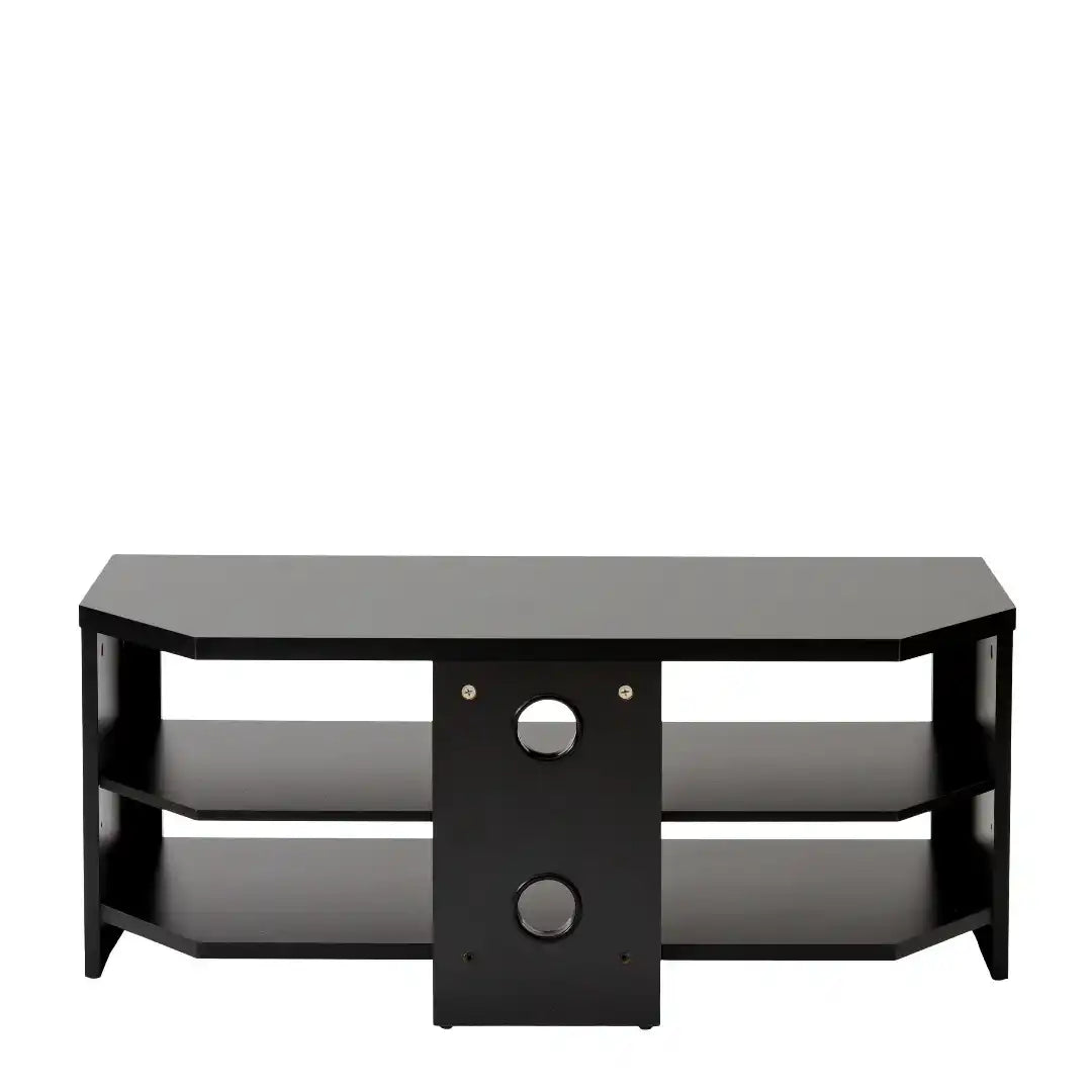 There is plenty of space to store your electronic accessories, such as a DVD player, satellite box or soundbar. The cable management leg on the rear hides unsightly wires. The middle shelf is height adjustable, providing more flexibility for additional storage.