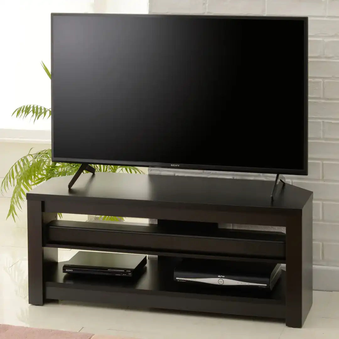 - STYLISH DESIGN – The angled corners of the Memphis TV stand make it ideal for room corners, but it also looks great against a wall. Caters for medium and large Samsung, Sony and LG TVs & many more branded screens.