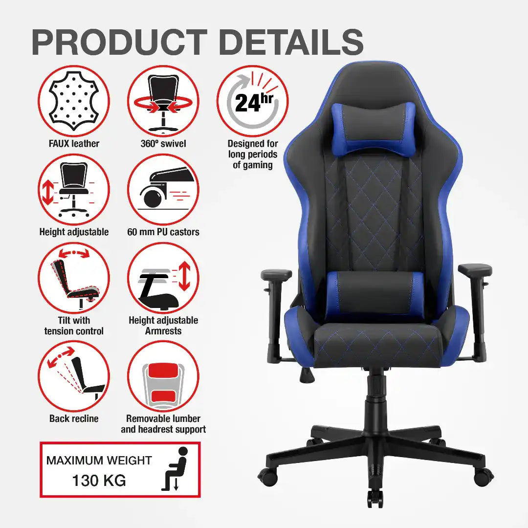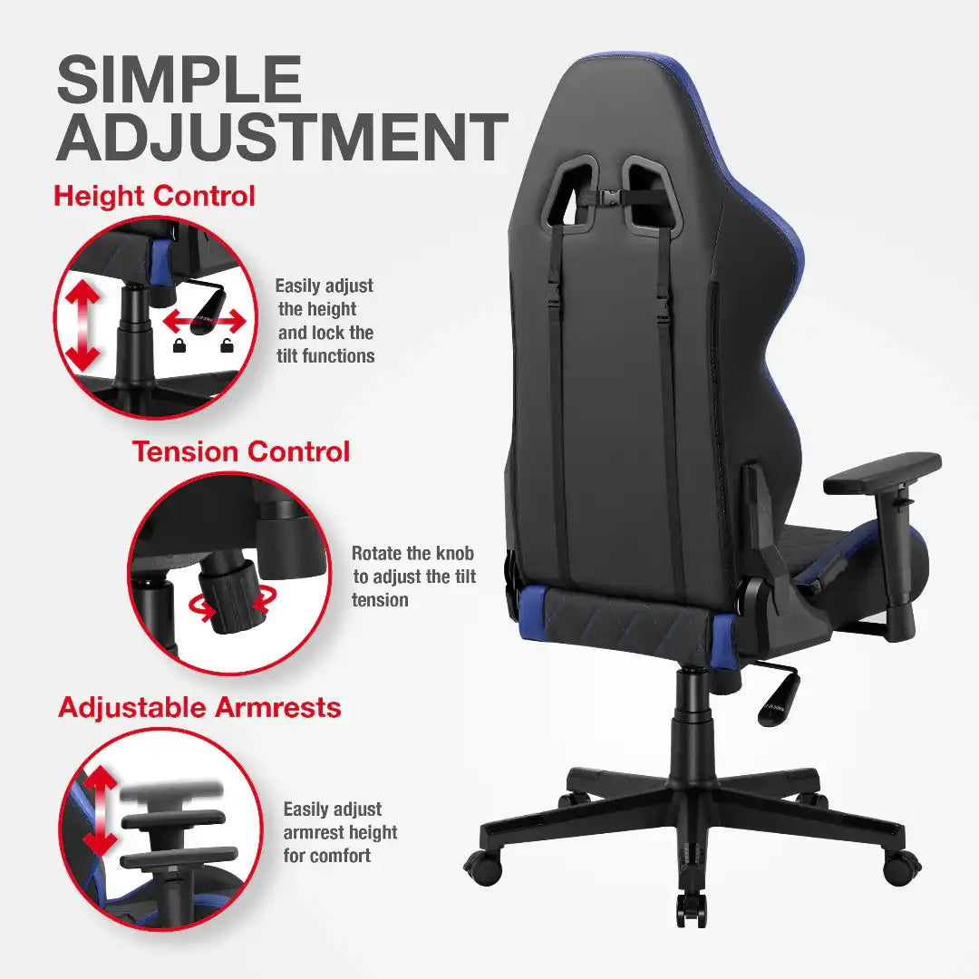 Monaco Ergonomic Gaming Chair - Black and Blue