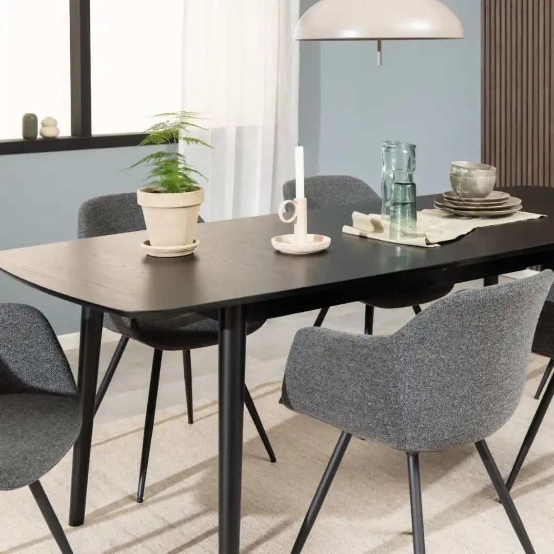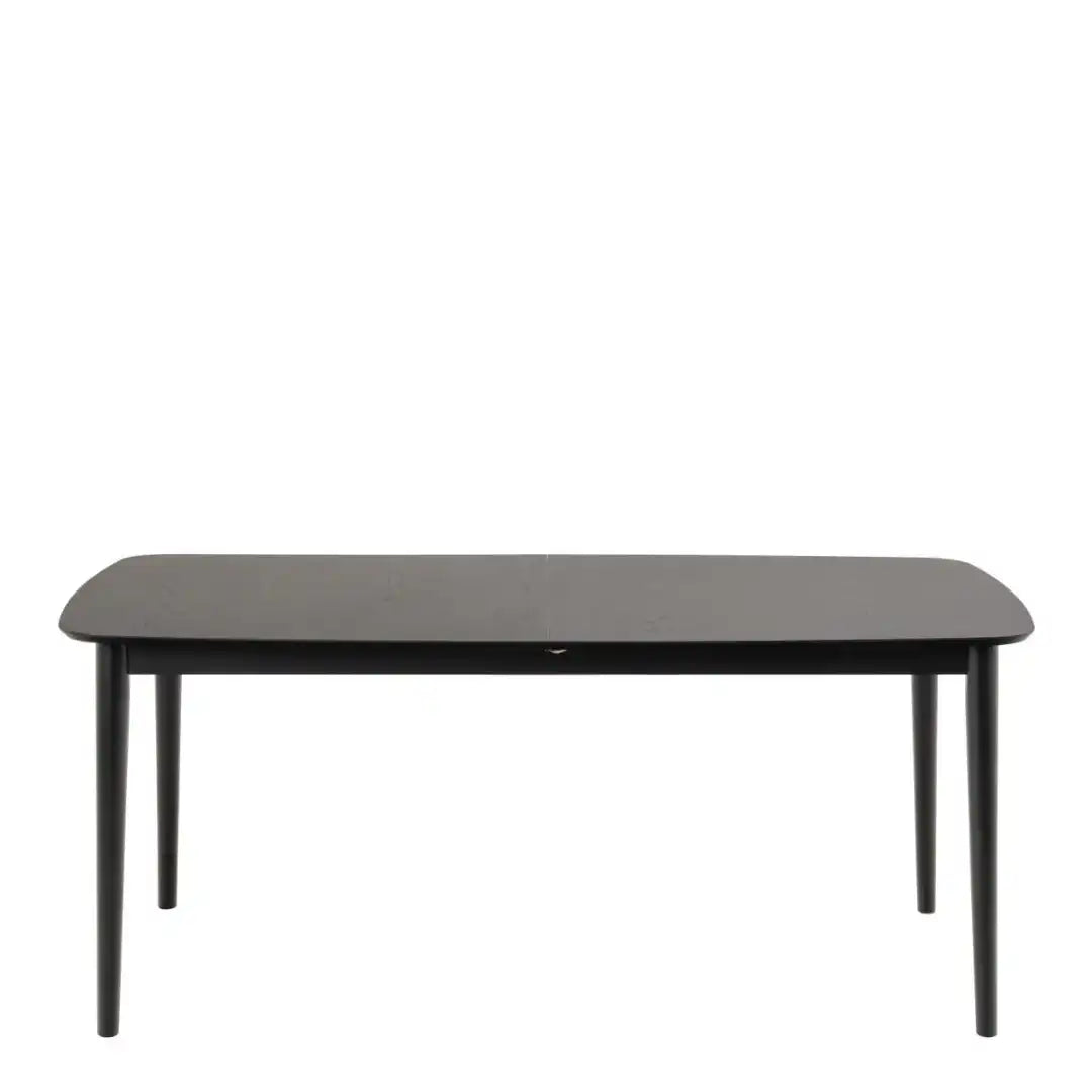 The Montreux Rectangular Dining Table in Black brings contemporary elegance to any setting. With soft edges and a black oak look, it easily extends via a concealed butterfly mechanism, making it ideal for both everyday meals and special gatherings.