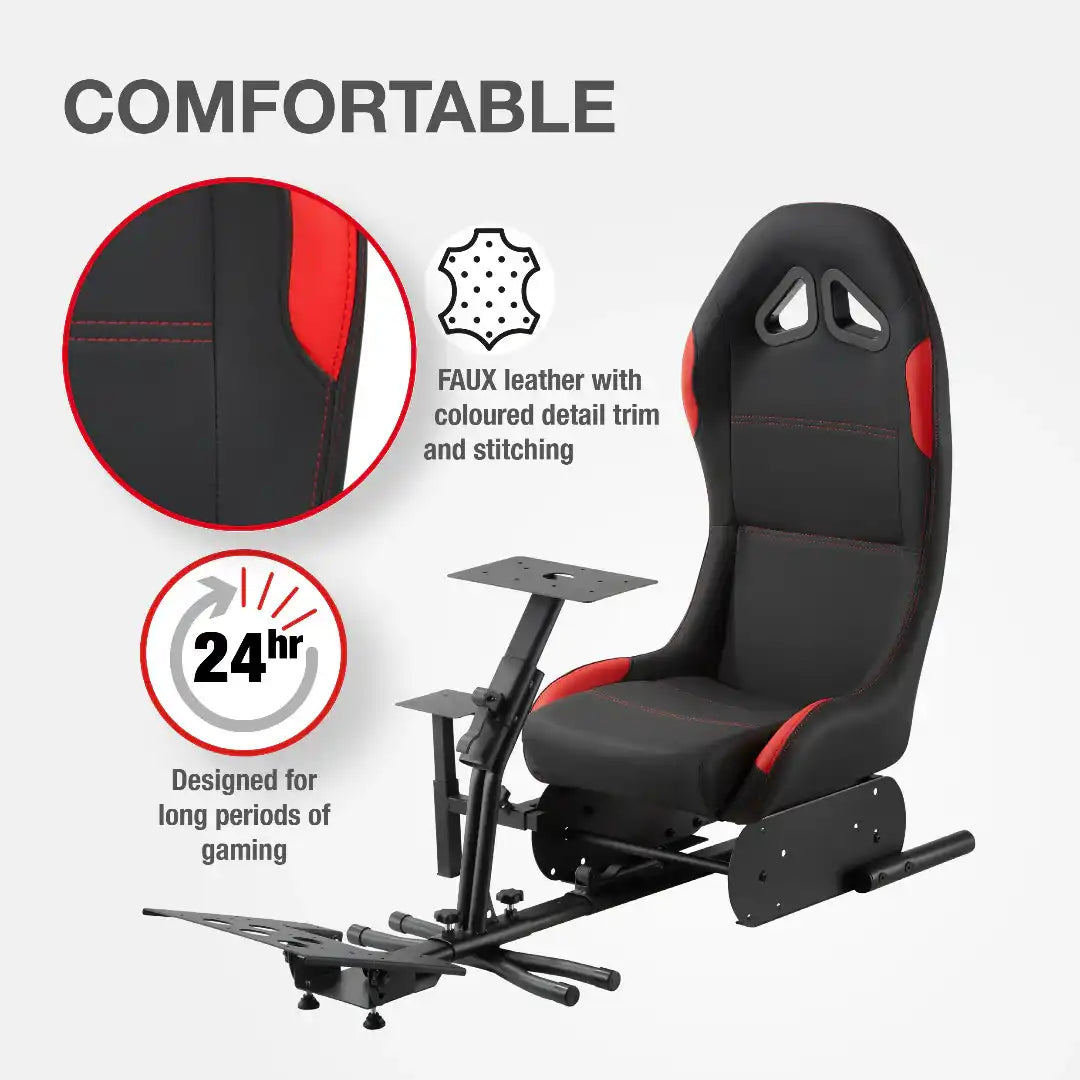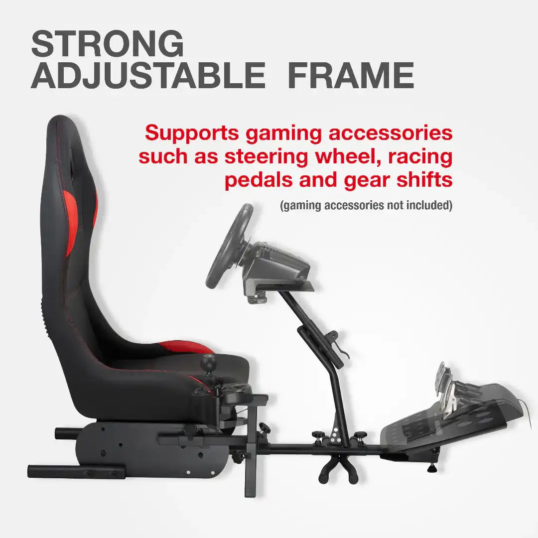 - Sturdy frame to support gaming accessories such as steering wheel / pedals etc. Please note, gaming accessories are not included.