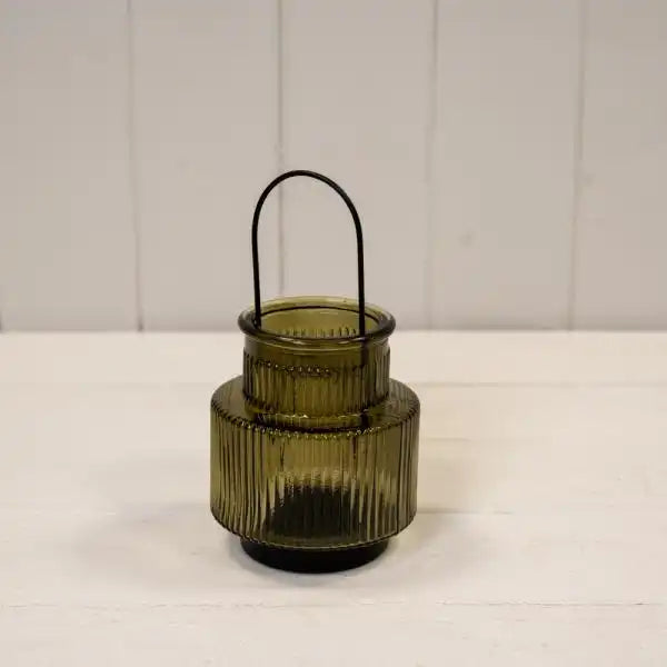 Olive Green Glass Candle Holder Small