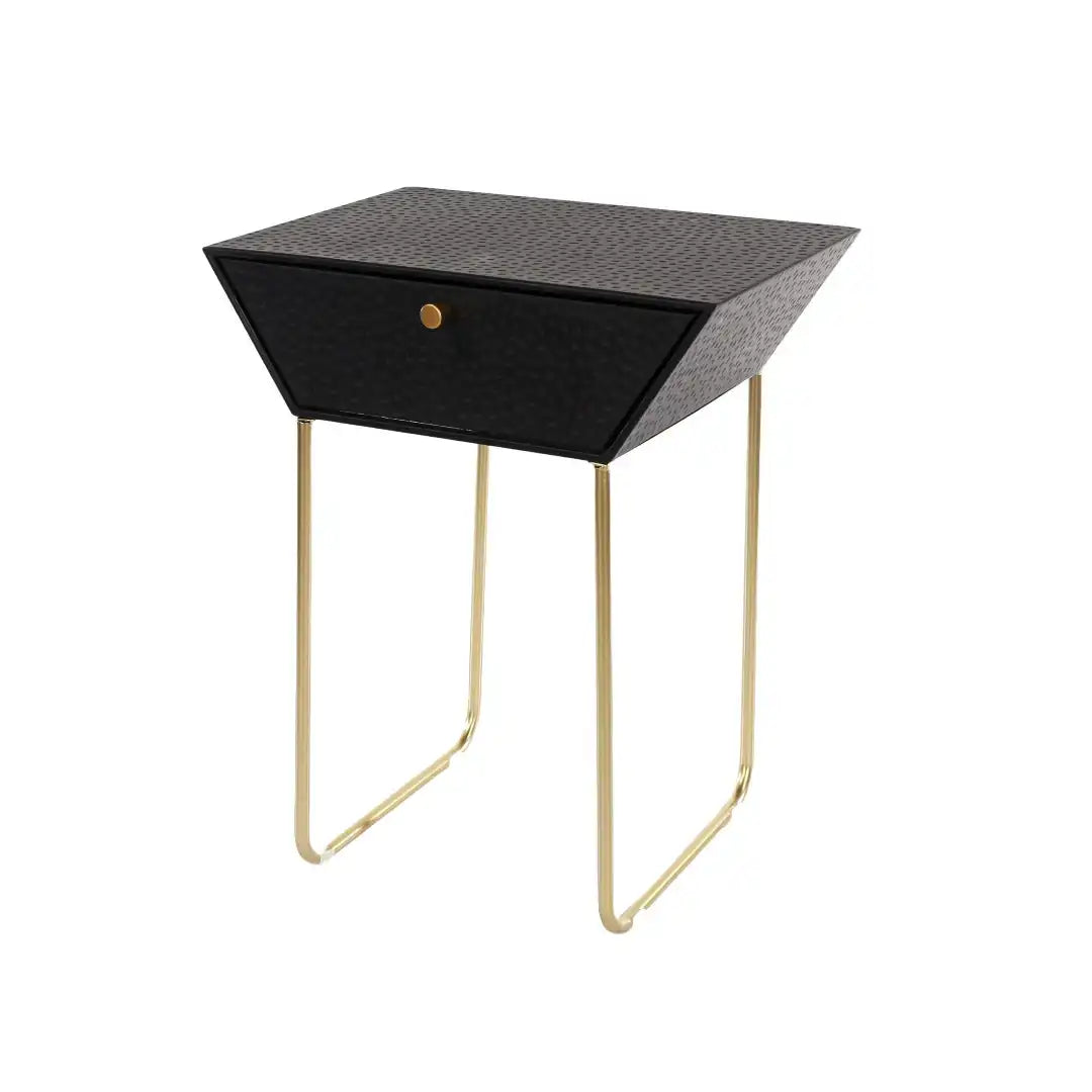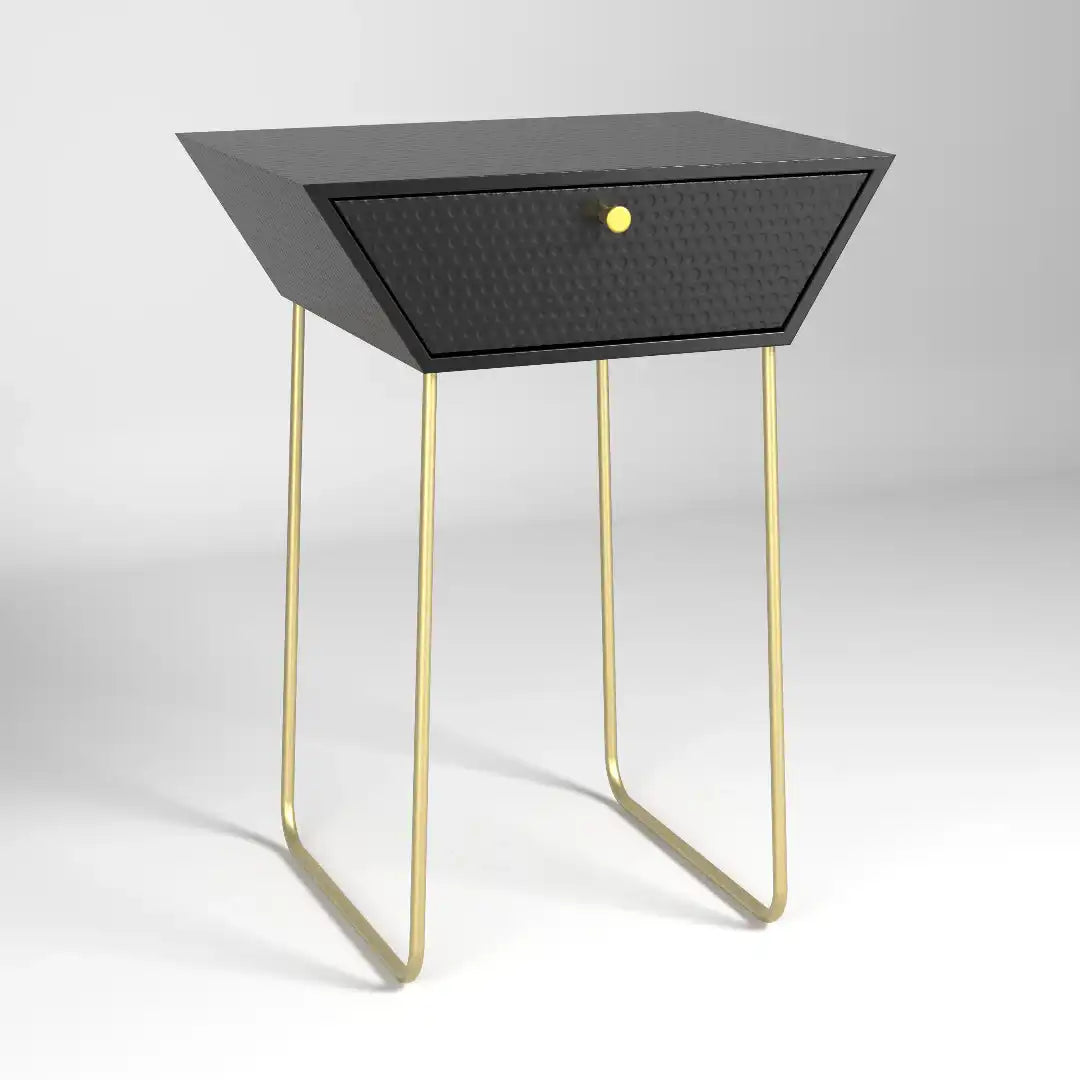 Options Apollo 1 drawer bedside cabinet, black body with black drawer, gold handle and gold legs
