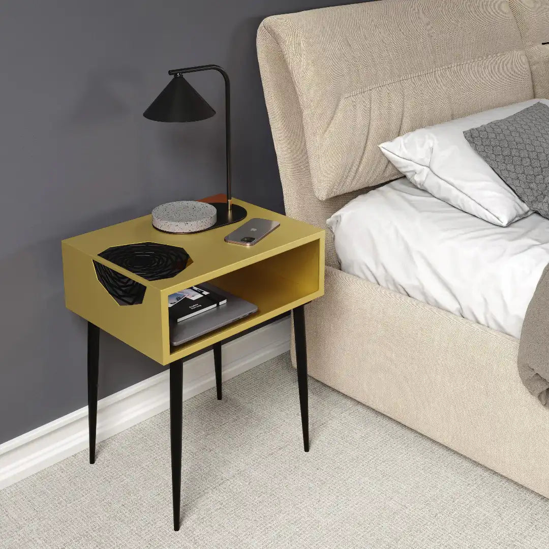 Options Galaxy 1 drawer bedside cabinet, gold body, black insert and black legs