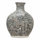 This grey and white bottle vase with a hand painted floral accent design would not look out of place in the centre of the table or hearth with a seasonal bunch of flowers. The overall dimensions of this vase are W27cm x D13cm x H32cm and the opening at top is W8cm x D5cm. Overall measurements: D32 x H27 x W13cm
