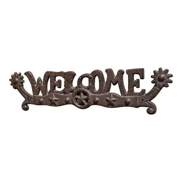 Made of cast iron metal, this decorative item includes has the word welcome in a horse inspired design with horseshoes and has a rustic, heavily distressed finish. Place outside your door to welcome guests to your home. 2 Pre-drilled holes for easy fixing to walls (wall fixings not included). Measurements: 1 x 8 x 32cm