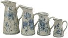 Set of 4 Ceramic Jugs, Vintage Blue & White Magnolia Design