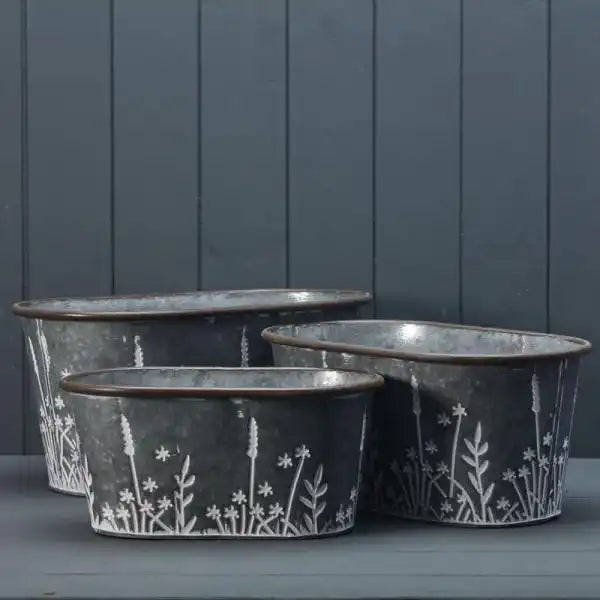 Set of Three Meadow Oval Zinc Planters