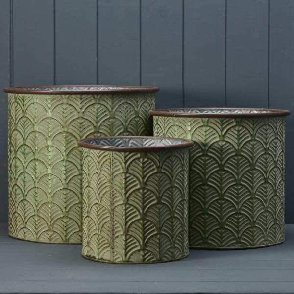 Set of Three Zinc Vintage Green Planters L30cm M26cm S20cm.Outer Qty: 2 Inner Qty: 2