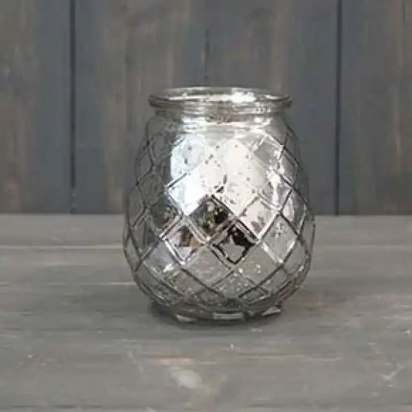 Small Silver Glass Tealight Holder TD6.9 x H10.5 x B5cm Weight-225g CL
