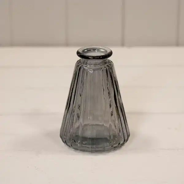 Smoky Grey Ribbed Glass Bottle L7.4cm W7.4cm H9.9cm W150g