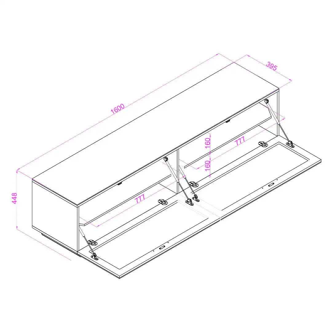 The Sorrento TV stand is elegantly finished with a colour-matched bonded glass top and matching glass drop-down front door (2 doors on the 160 cm cabinet). Remote-friendly printed matrix on the doors means all your electronic items remain hidden yet can be operated without having the doors open.